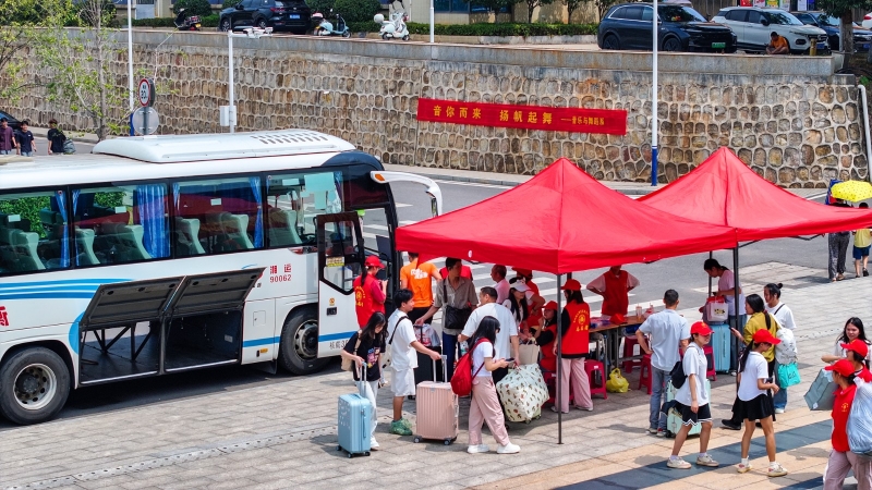 迎新大巴滿載著新生和家長的期待