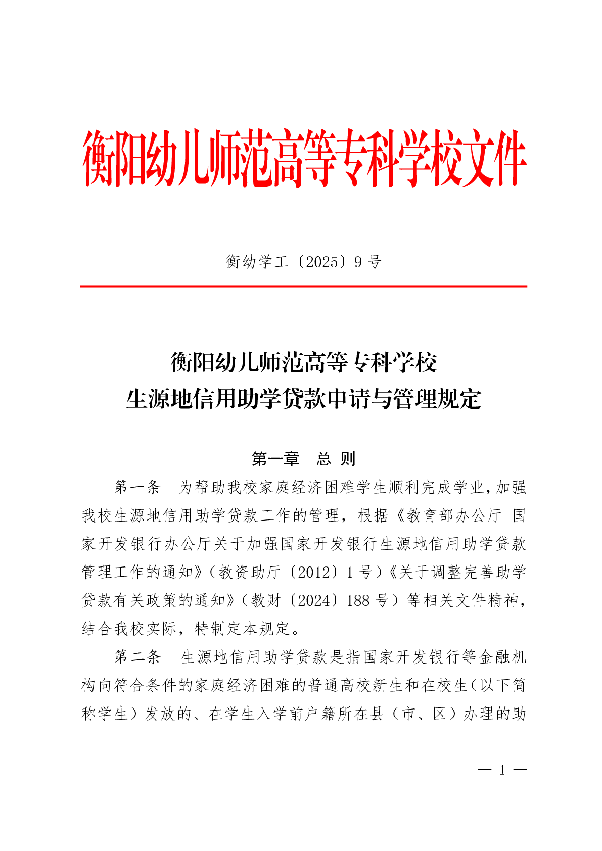 衡陽幼兒師范高等??茖W(xué)校生源地信用助學(xué)貸款申請與管理規(guī)定